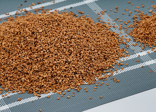 VIEM MORE核桃殼濾料接近圓顆粒,顏色為紅黑褐色,多孔質輕